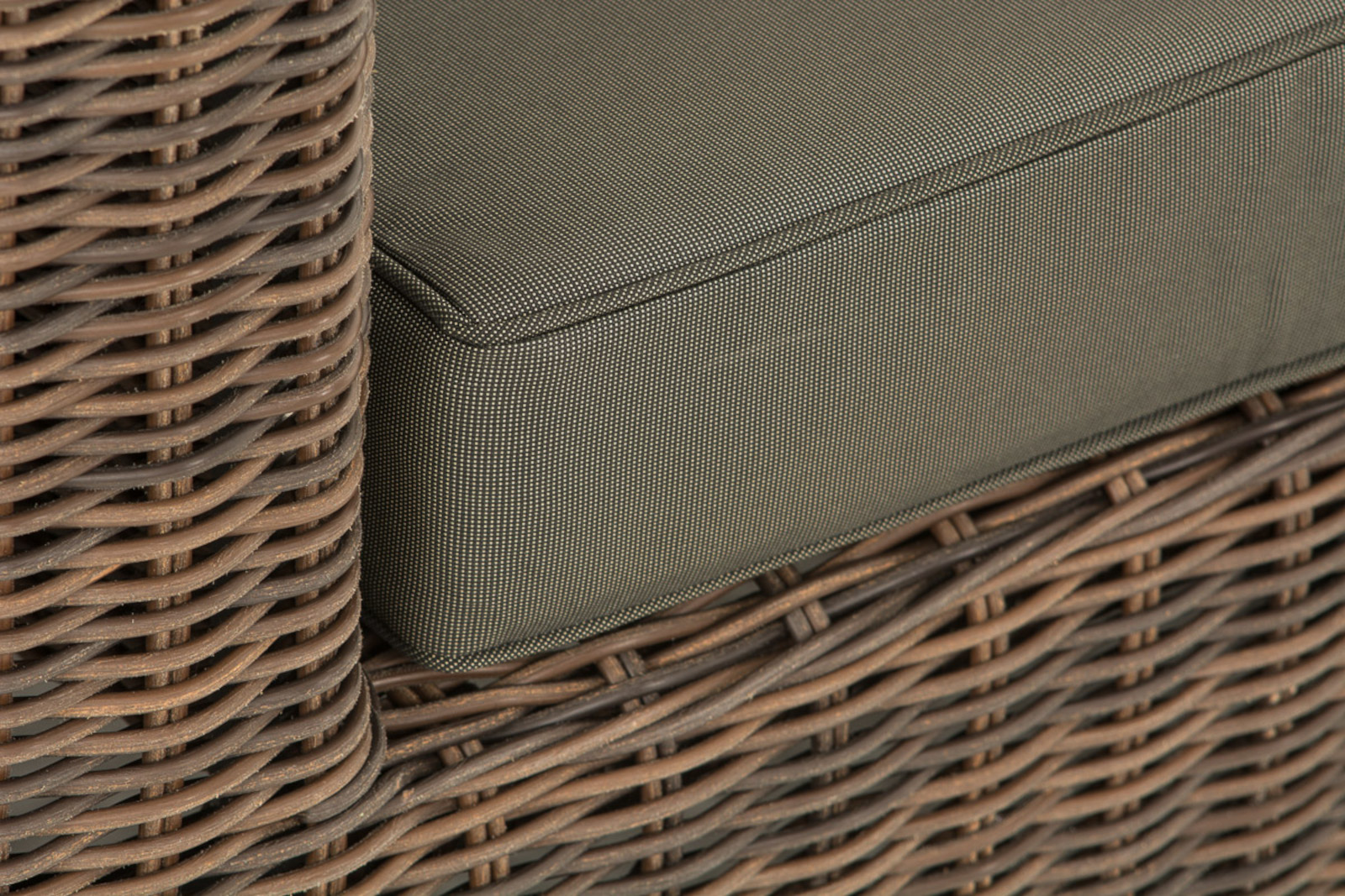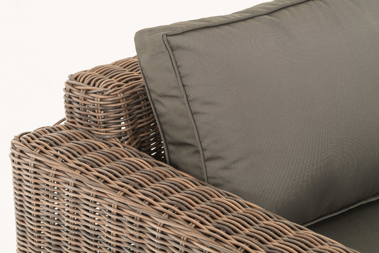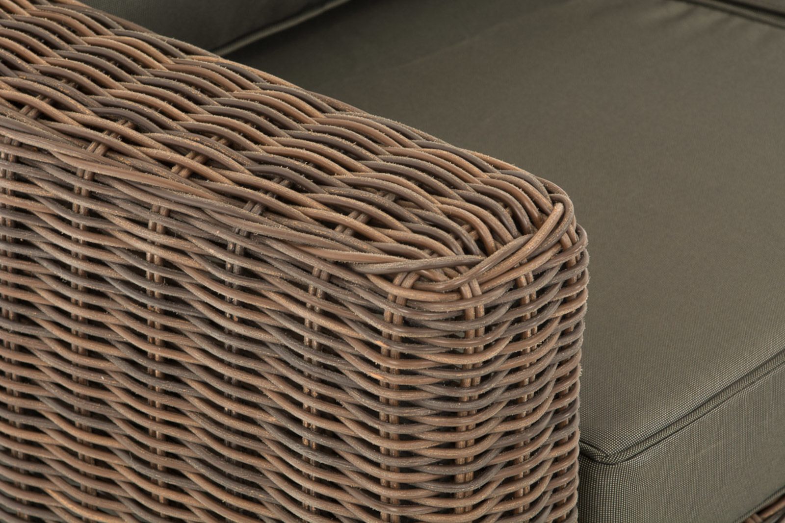 Das besonders gut für die Verwendung im Außenbereich geeignete UV-beständige Material Polyrattan sieht aus wie herkömmliches Rattangeflecht, ist aber viel robuster. Die hochwertig verarbeiteten 5 mm dicken, runden Polyrattanfasern sind wasserfest, angenehm pflegeleicht und vollständig durchgefärbt, sodass sie auch bei häufiger und langjähriger Nutzung unverändert ihre grau melierte Farbtiefe behalten. Dieser edle Farbton sorgt in Kombination mit einer leichten Struktur für das absolut natürliche Erscheinungsbild der Möbelgarnitur.
