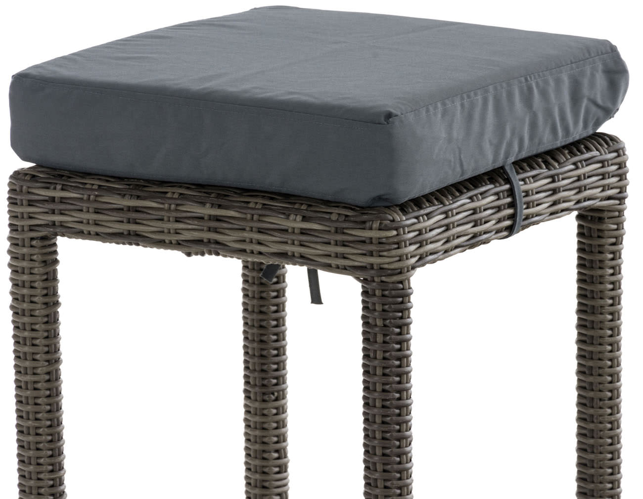 Mit seinem klaren und modernen Design macht dieser Barhocker aus Polyrattan nicht nur auf der Gartenparty eine hervorragende Figur! Auch für einen gemütlichen Kaffee in der Nachmittagssonne oder ein Glas Wein am Abend ist der Barstuhl eine tolle und schicke Alternative (oder Erweiterung) zu einer klassischen Lounge-Gruppe.