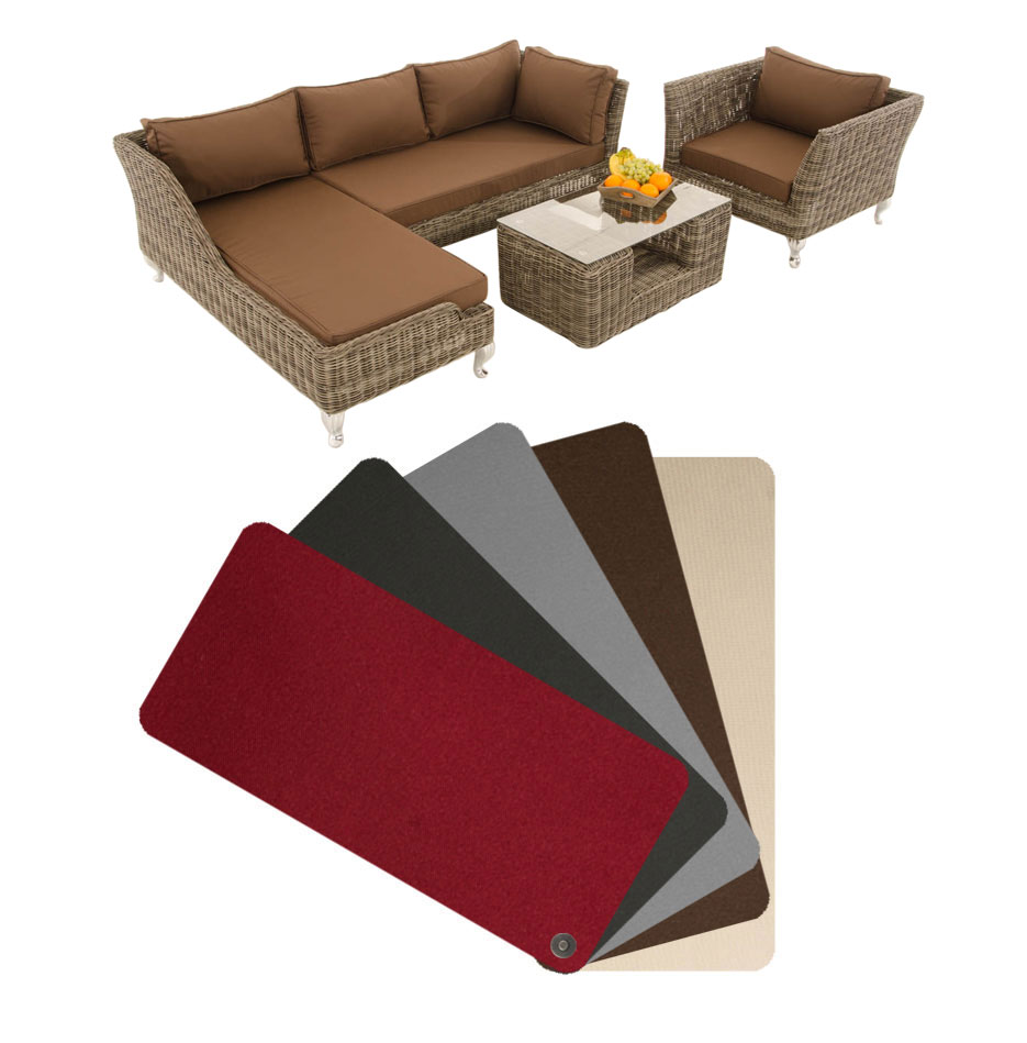 Es handelt sich hierbei um ein komplettes Set Bezüge zu der Gartengarnitur Moss in fünf verschiedene Farben: Anthrazit, Cremeweiß, Eisengrau, Rubinrot oder Terrabraun.