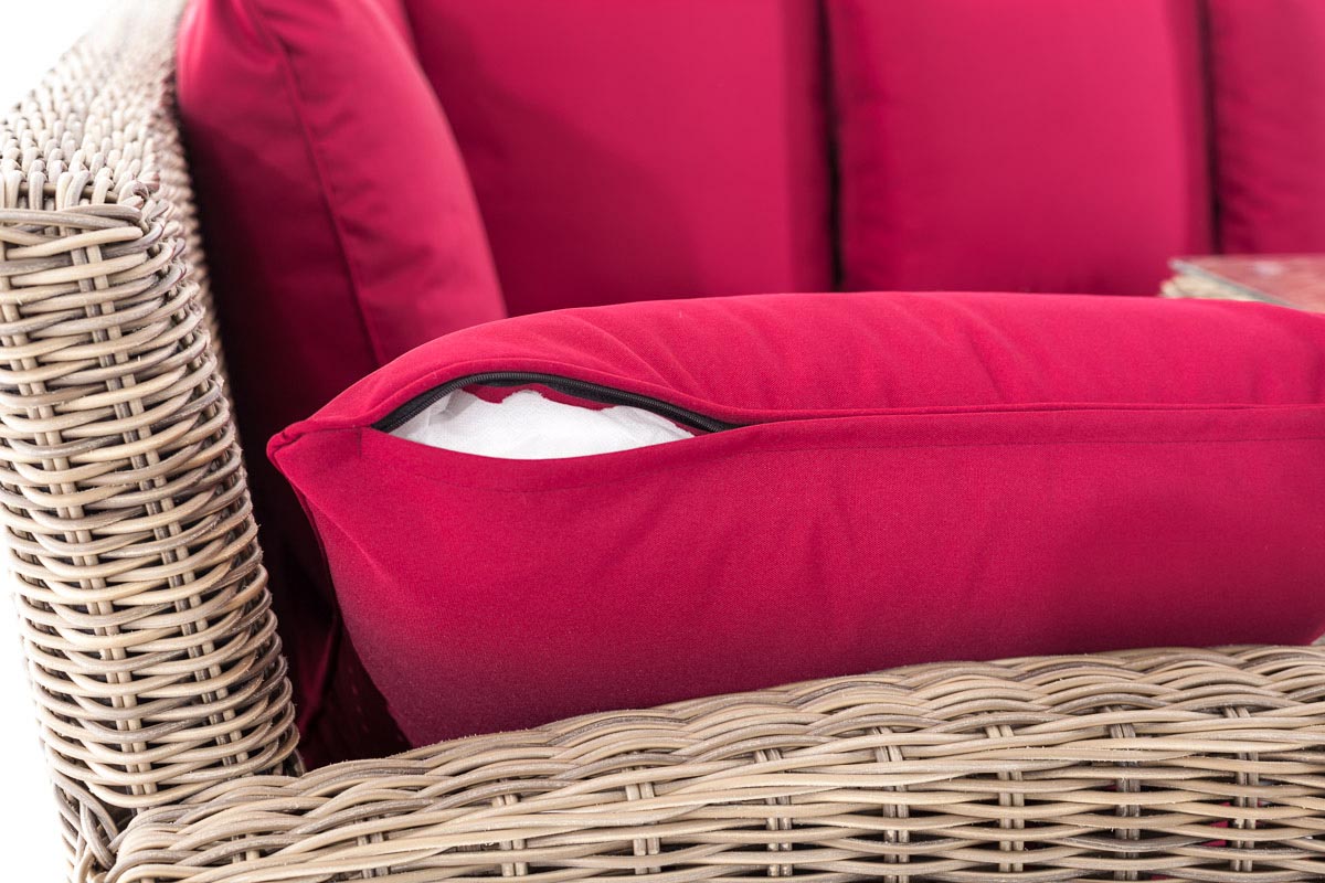 Die bequemen dicken Sitzkissen sind mit Bezügen aus 100 % Polyester versehen. Diese sind wasser- sowie schmutzabweisend und durch ihre hohe Strapazierfähigkeit sehr lange haltbar.