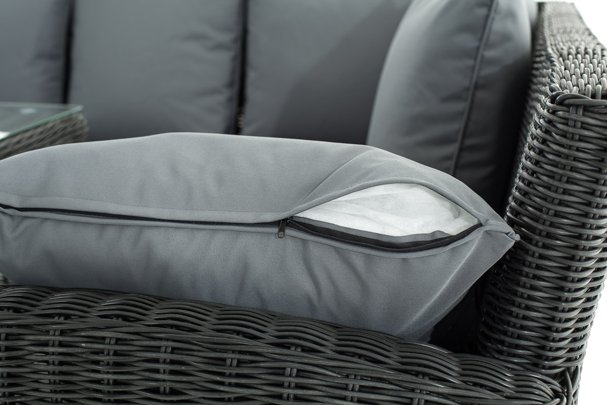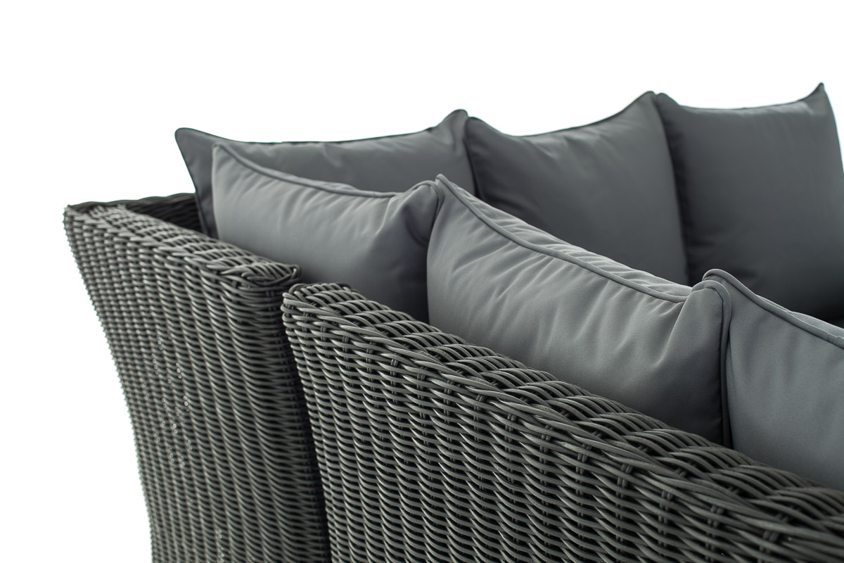 Die Polyrattanfasern sind wasserfest, pflegeleicht und UV-beständig