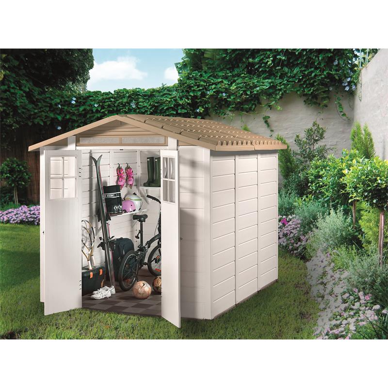 Der aus wetterfestem PVC gefertigte Garofalo- Gartenhaus ist für alle Wetterbedingungen bei Regen, Sonne und Schnee geeignet.