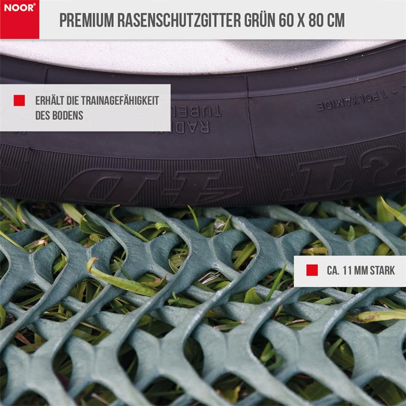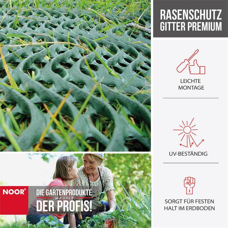 Der Bedarf nach unversiegelten Nutzflächen ist in den letzten Jahren stark gestiegen und damit auch der Bedarf nach Alternativen zu den klassischen Bodenbefestigungen wie Asphalt und Beton. Das Premium-Rasenschutzgitter wird aus Kunststoff gefertigt und dient der Bodenstabilisierung sowie dem Rasenschutz. Es hat keine Auswirkungen auf Boden und Grundwasser. Es gibt außer vertikutieren keine Einschränkungen in der Pflege der Rasenflächen.