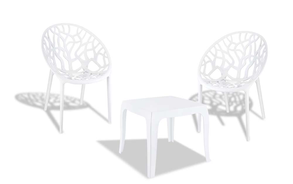 In diesem Set sind zwei Stühle Crystal und ein Tisch Queen enthalten. Diese passen perfekt zusammen und ergeben eine schicke und praktische Sitzgruppe, die auch im Außenbereich eingesetzt werden kann. Der Stuhl besitzt ein schickes und modernes Design und passt nahezu in jede Umgebung. Durch die schönen Farben sorgt das Modell Crystal für ein wunderschönes und warmes Ambiente, in dem sich jeder Gast wohl fühlt! In Sachen Praktikabilität ist dieser Stuhl ein absolutes Ass. Die Reinigung dieses Plastikstuhls ist kinderleicht – ob Regen, Sekt oder Selters, Flecken gehören ab nun der Vergangenheit an. Weiterhin kann der Stuhl im Innen- und Außenbereich genutzt werden. Dadurch, dass der Stuhl gestapelt werden kann, nimmt dieser bei Nicht-Nutzung nur wenig Raum in Anspruch.